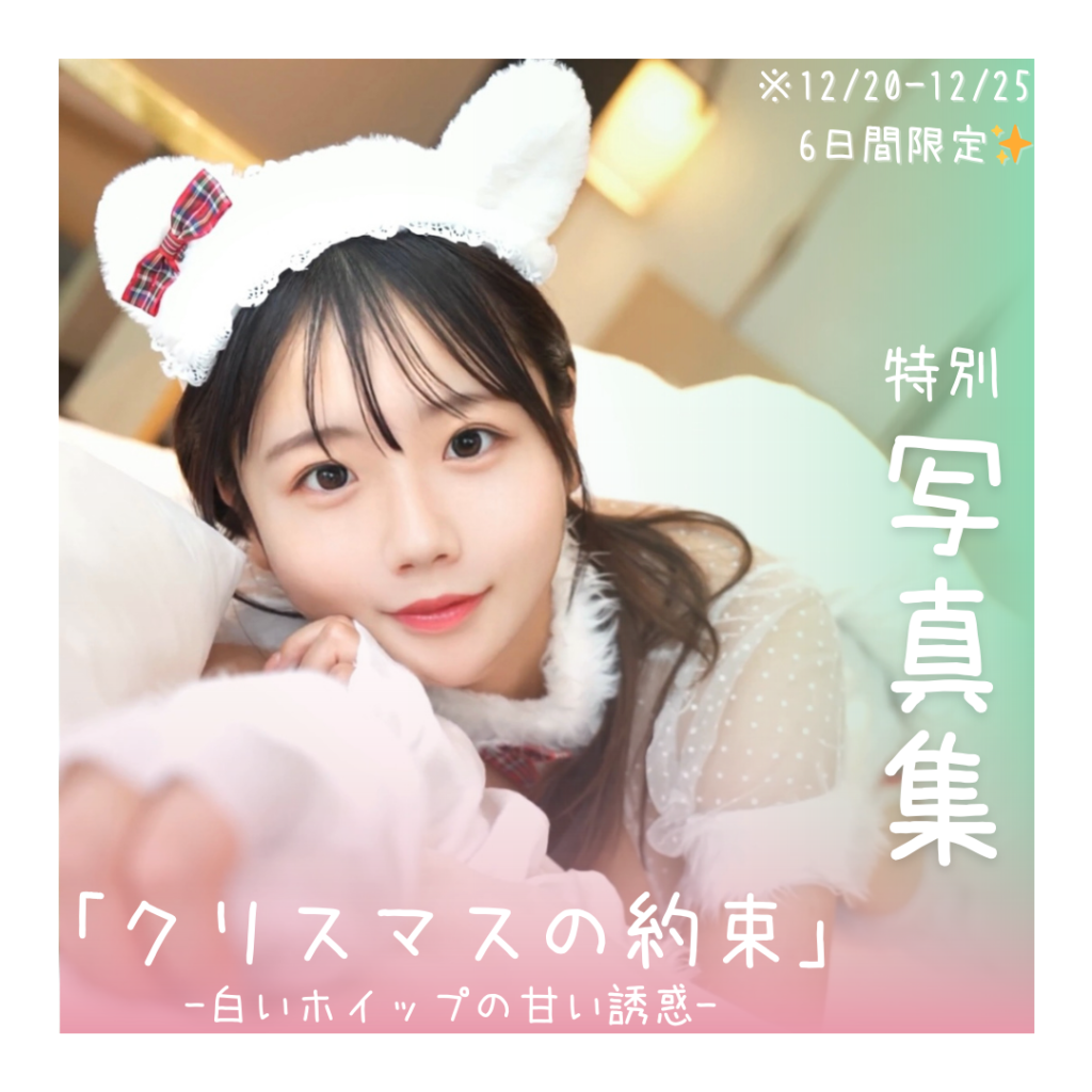 トナカイ、白メレンゲ、赤サンタ、白ねこサンタ…どの衣装も可愛くてセクシーで、想像しただけでワクワク!特に特典のホイップクリームのやつ、秘密の約束って言葉にドキッとしちゃった💓191枚もボリュームたっぷりで、6日間限定なんだね